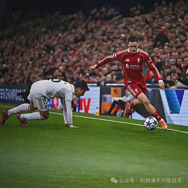52分钟这一次任意球,麦卡利斯特站在对方人墙之前,在索博斯洛伊射门的瞬间,并没有有意躲闪,而是捂着脸站在原地,尽可能遮挡对方视线。从这个细节可以看出,利物浦在任意球设计上下了功夫。本场最终凭借任意球配合绝杀皇马,也就并不意外。